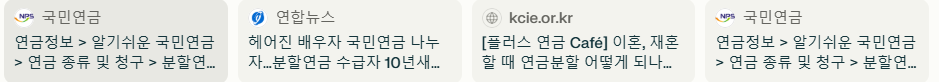 - 배우자의 국민연금 가입기간 중 혼인기간이 5년 이상일 것(실질적 혼인관계가 없는 별거, 가출 기간 등은 제외)